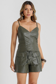 Leather shorts with front pockets - Ana Paula | Moss Green
