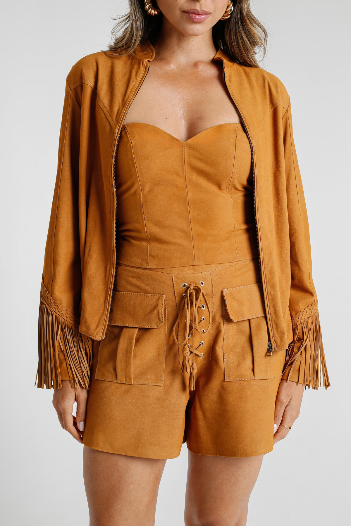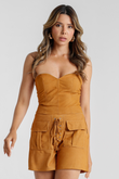 Short de Couro Pelica com Bolsos na Frente - Ana Paula | Cor Castor