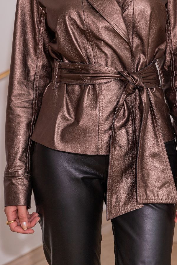 Blazer Feminino de Couro Pelica - Debora | Marrom