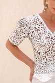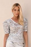 Blusa de Couro Pelica com Corte a Laser Decote V - Giulia | Prata