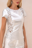Blusa de Couro Pelica com Detalhe Lateral em Corte a Laser - Giuliana | Prata