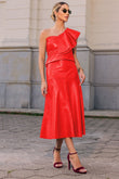 Blusa de couro Pelica, com modelagem um ombro só, com detalhe em babado duplo.