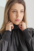 Blusa de gola alta em lastex, trazendo mais conforto à peça.