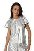 Com modelagem solta no corpo e mangas amplas curtas. Suas mangas estilo flutuantes possui franzidos que conferem ainda mais charme à peça.