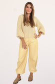 Calça de Couro Pelica - com Modelagem Barrel - Solange | Amarelo