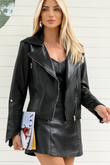 Jaqueta de Couro Pelica com Mangas Dobráveis - Rebeca | Preta
