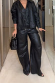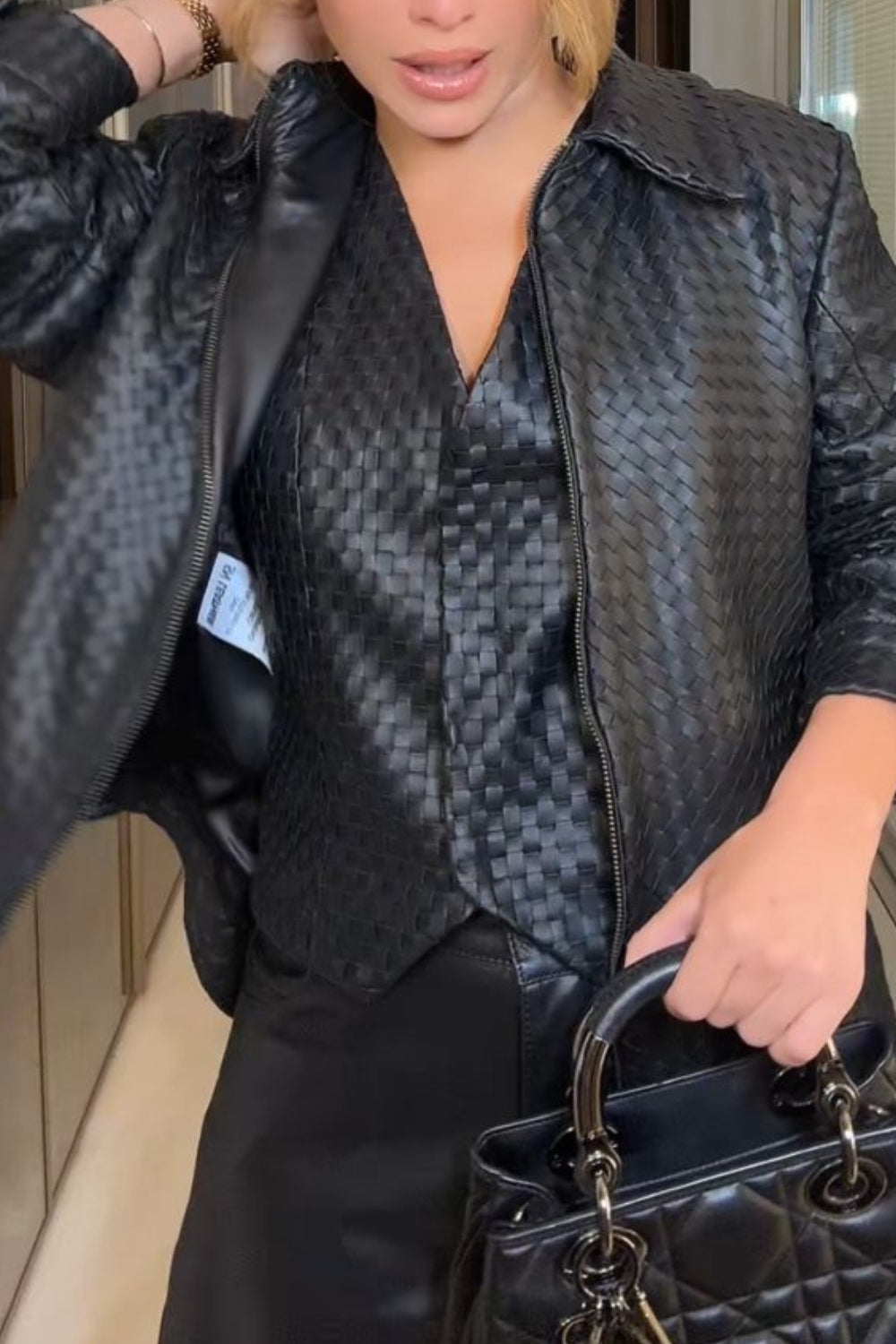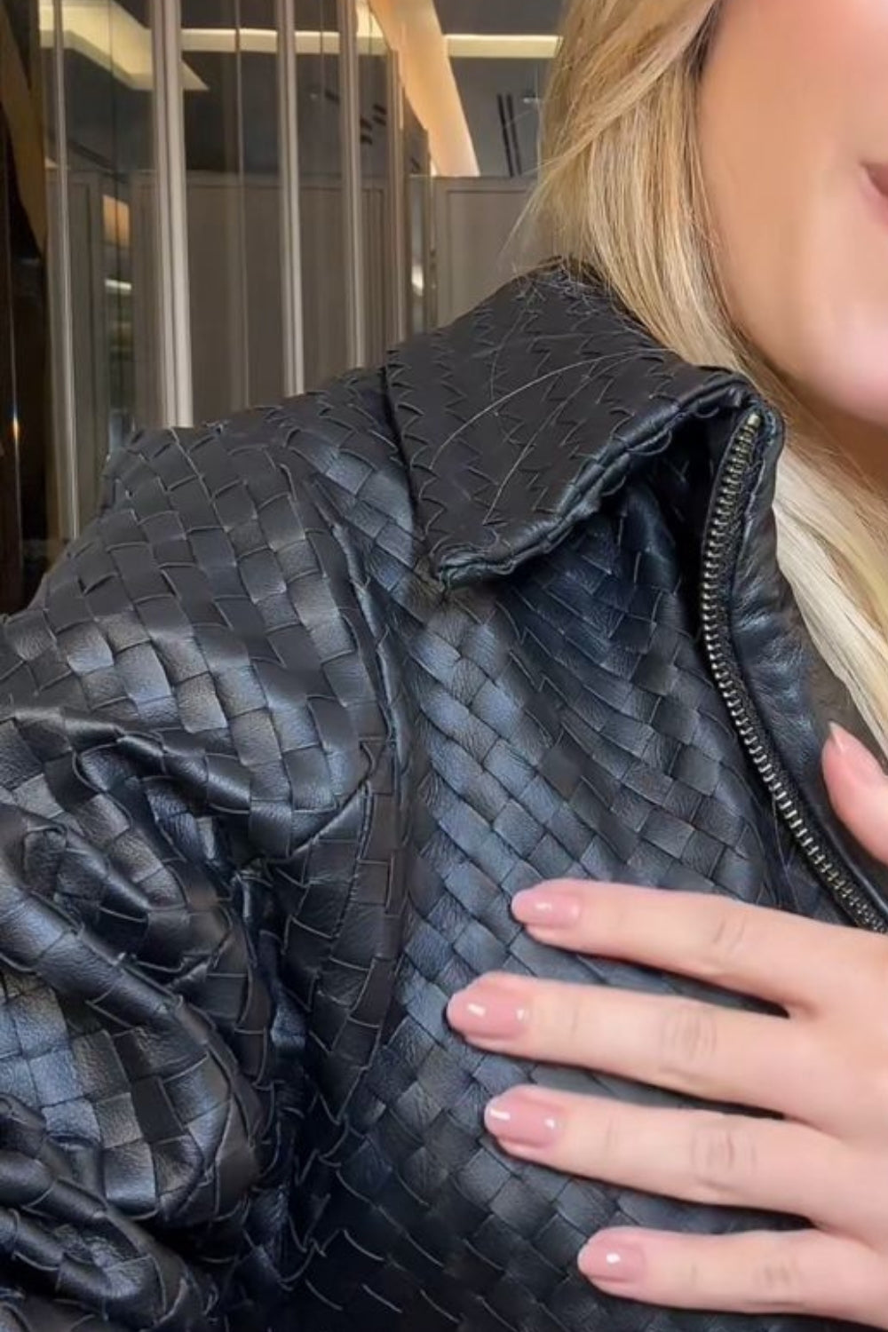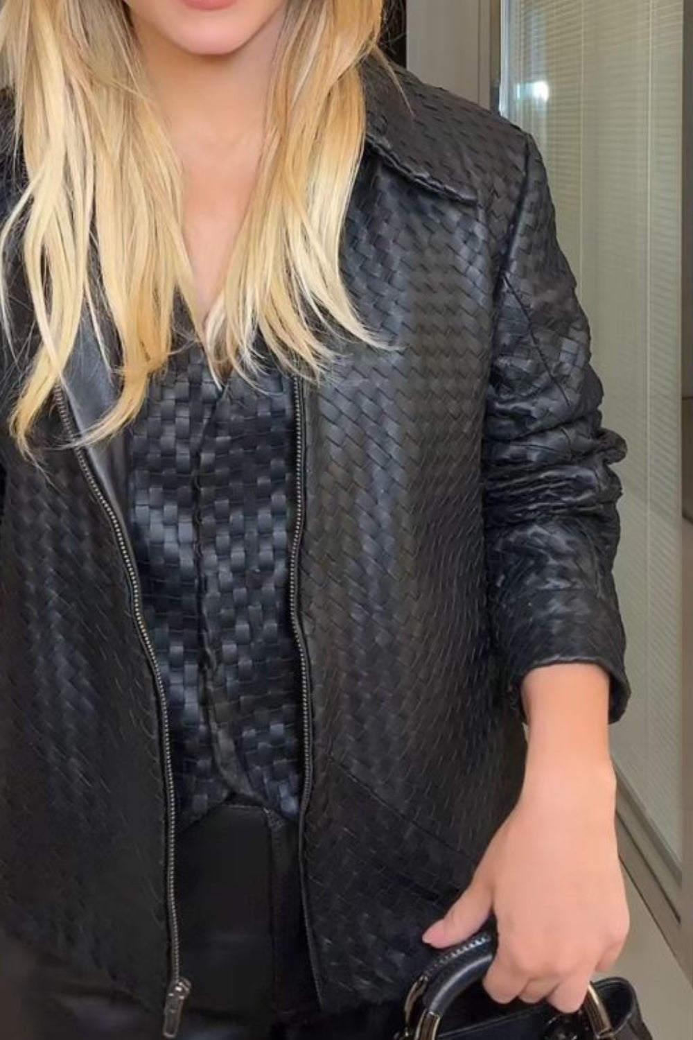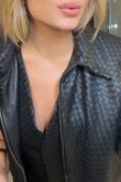 Jaqueta Preta de Couro Pelica em Tressê - Maria
