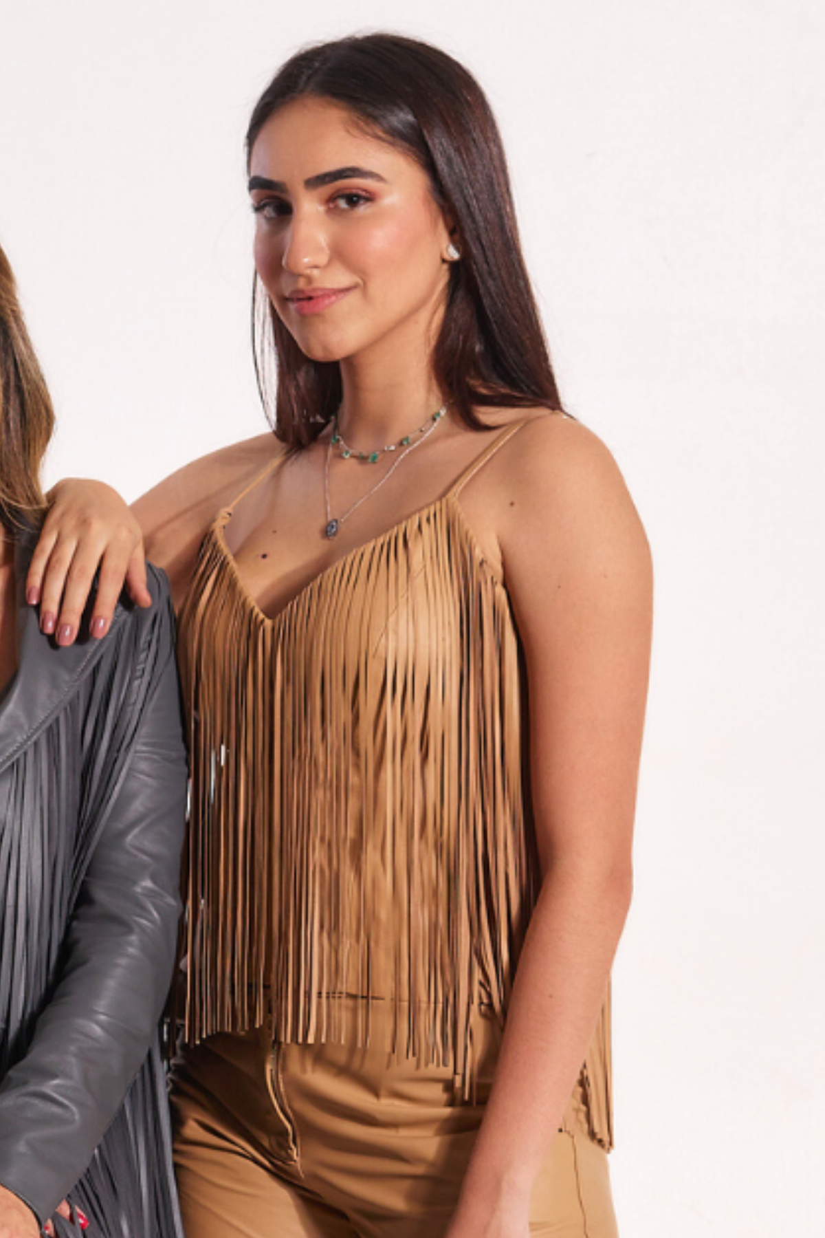 Regata de Couro Pelica com Franjas - Lorena | Bege