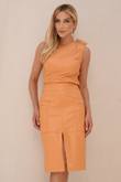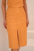 Saia Midi com Fenda Frontal e Bolsos Quadrados - Rebeca | Laranja Damasco