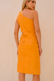 Saia Midi com Fenda Frontal e Bolsos Quadrados - Rebeca | Laranja