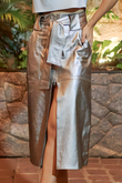 Saia Midi de Couro Pelica - Marta | Prata Velho