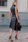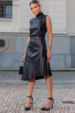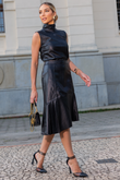 Saia Midi de Couro Pelica - Débora | Preta