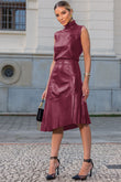 Saia Midi de Couro Pelica - Débora | Vinho Beterraba 14