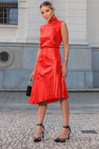 Saia Midi de Couro Pelica - Débora | Vermelho Tomate