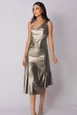 Saia Midi de Couro Pelica - Luíza | Prata Velho