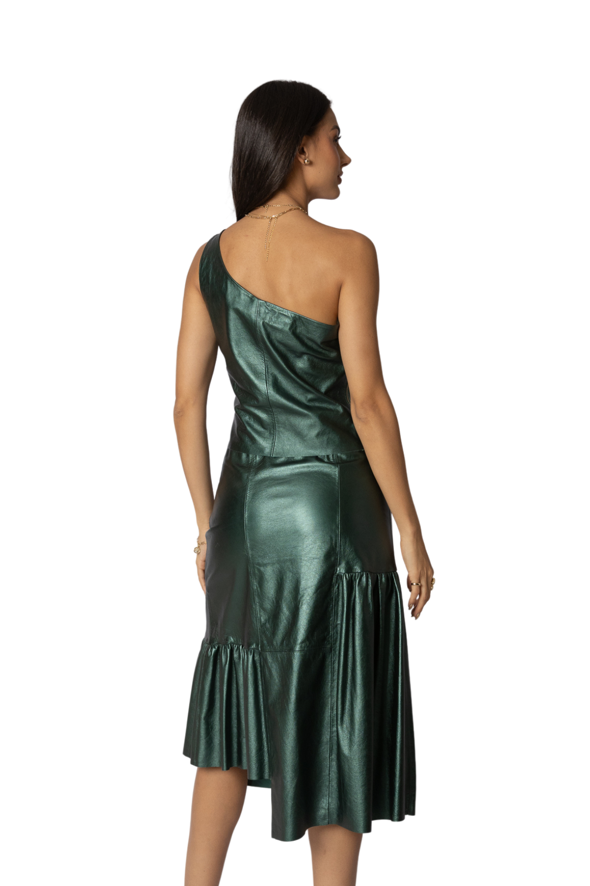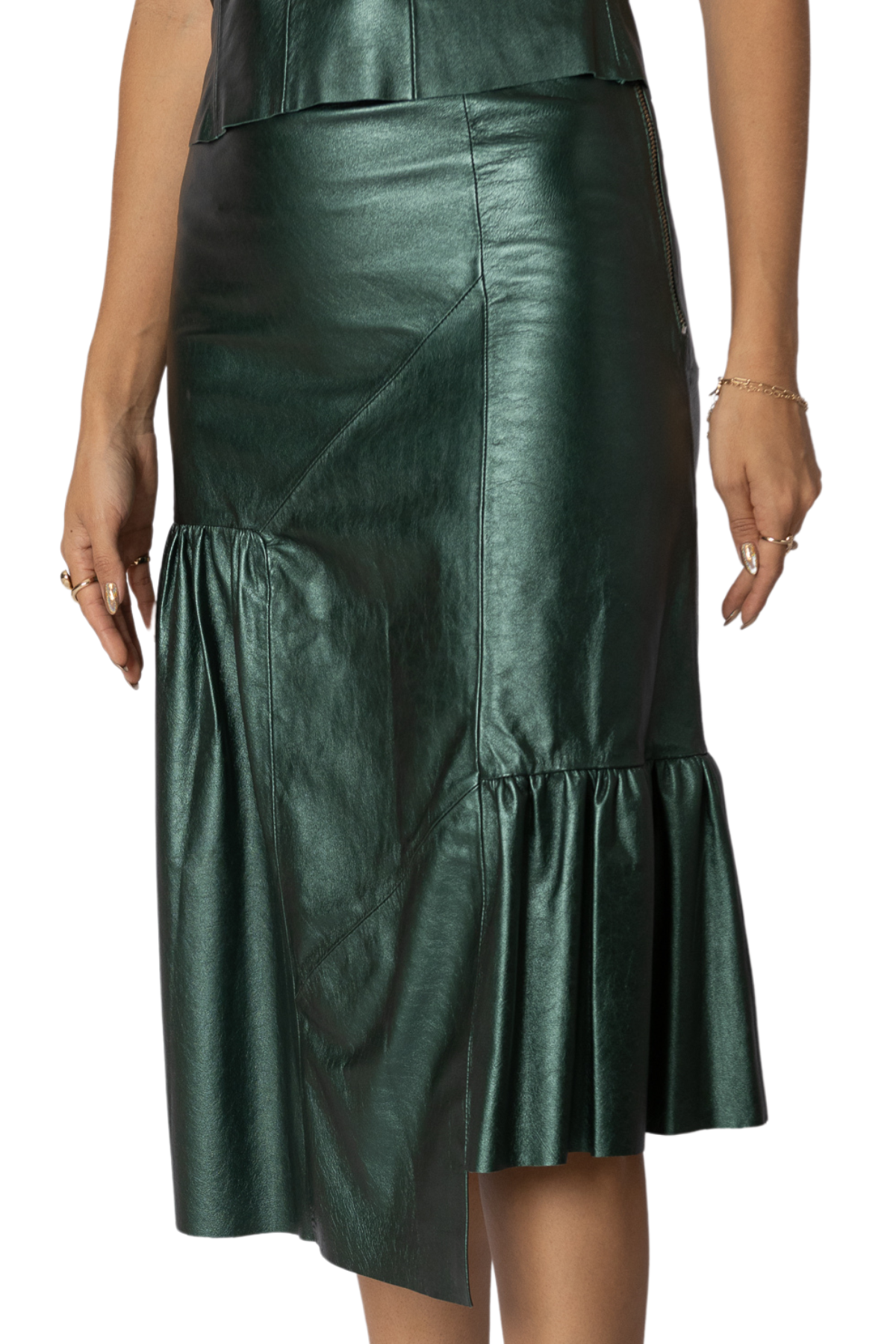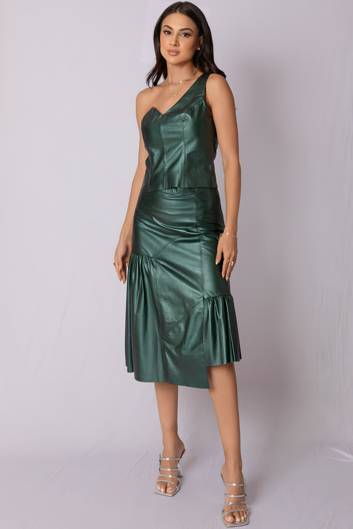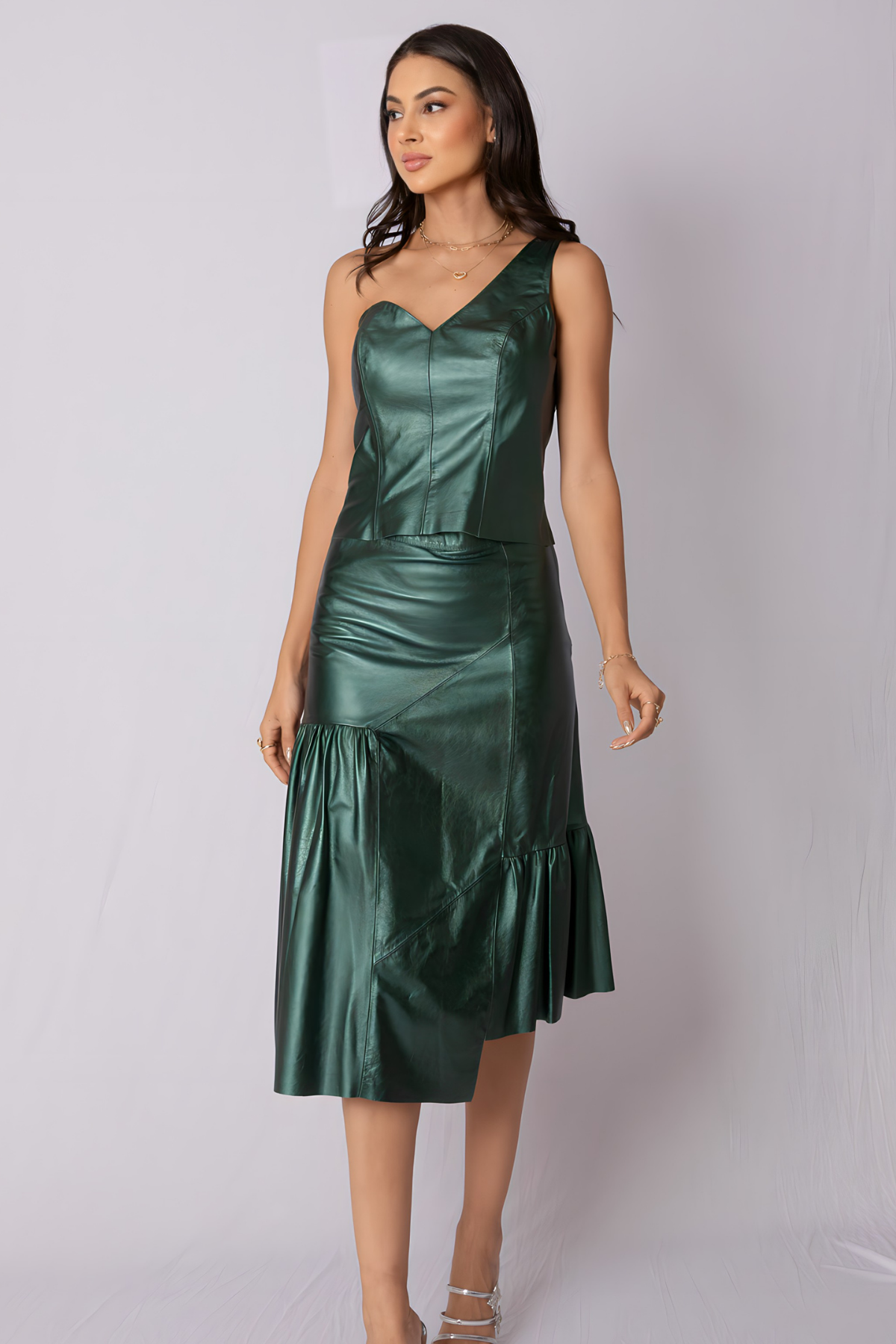 Saia Midi de Couro Pelica - Luíza | Verde Militar