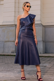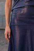 Saia Midi de Couro Pelica - Madalena | Azul Marinho