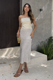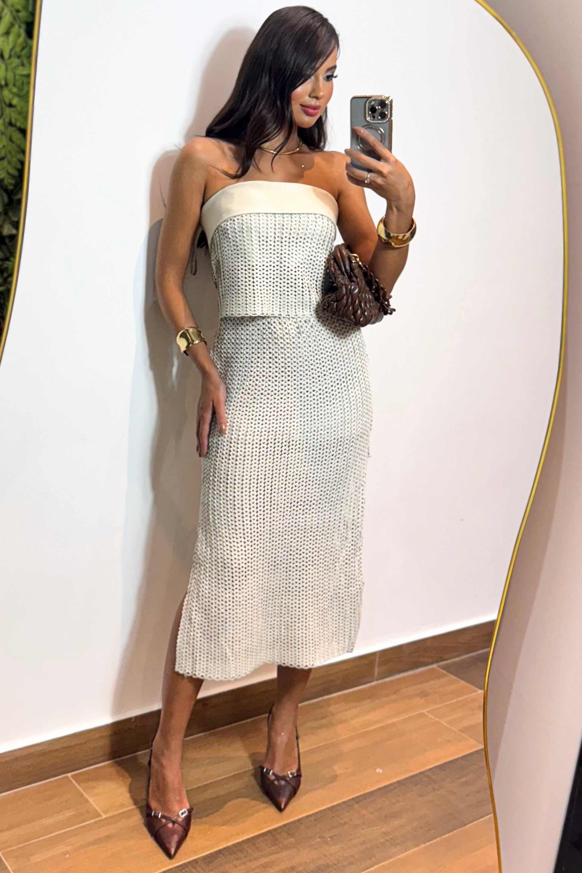 Saia Midi de Tricô em Couro Pelica - Carolina | Off Creme