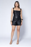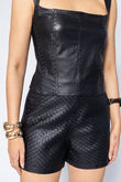 Short com modelagem reta. O couro foi recortado e tramado em estilo tressê manualmente, conferindo ainda ainda mais charme à peça.