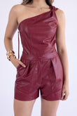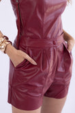 Short de Couro Pelica com Pregas e Cós - Mariele | Marsala