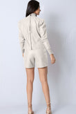 O short possui cós que fecha com botão encapado e braguilha com zíper de metal