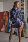 Short Saia de Couro Pelica - Antônia | Azul Marinho