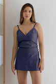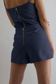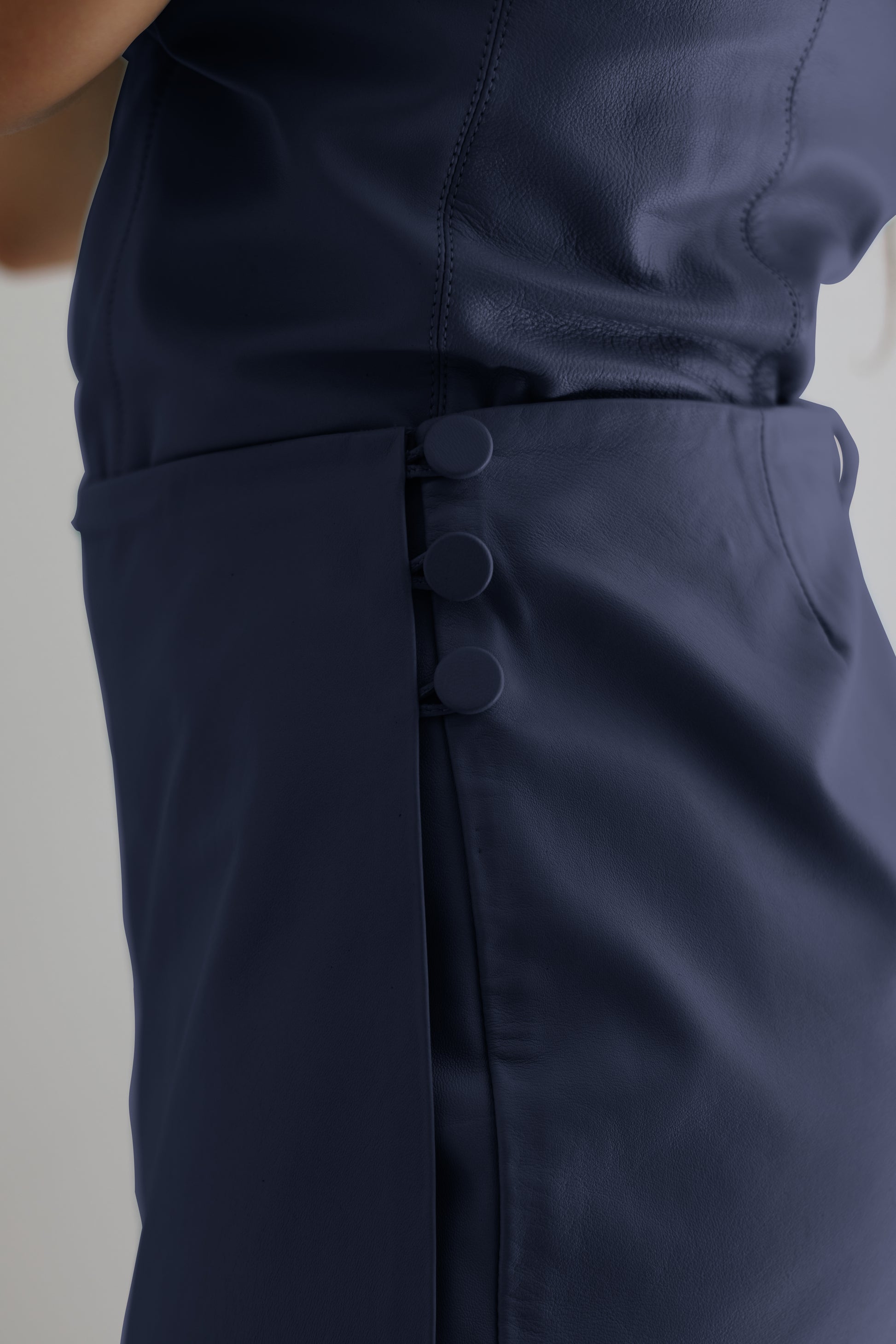 Short Saia em Couro Pelica - Bárbara | Azul Marinho