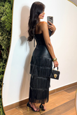 Top sem alças, estilo tomara que caia em couro, com decote coração.