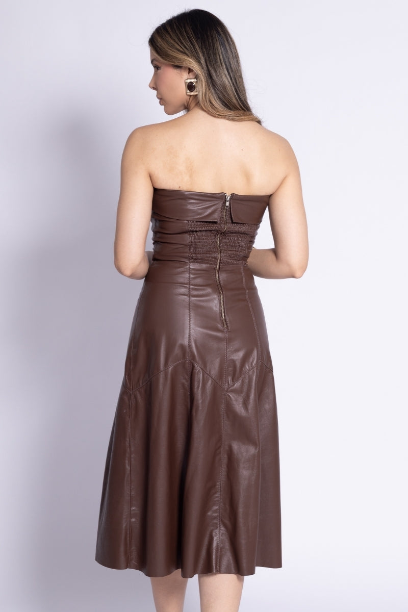Vestido de Couro Pelica Midi - com Debrum - Mavie