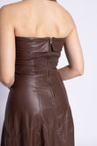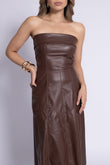 Vestido de Couro Pelica com comprimento midi, com detalhe no busto debrum / dobra em couro liso.