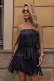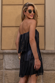 Vestido de Couro Pelica Sem Alças com Franjas - Samara