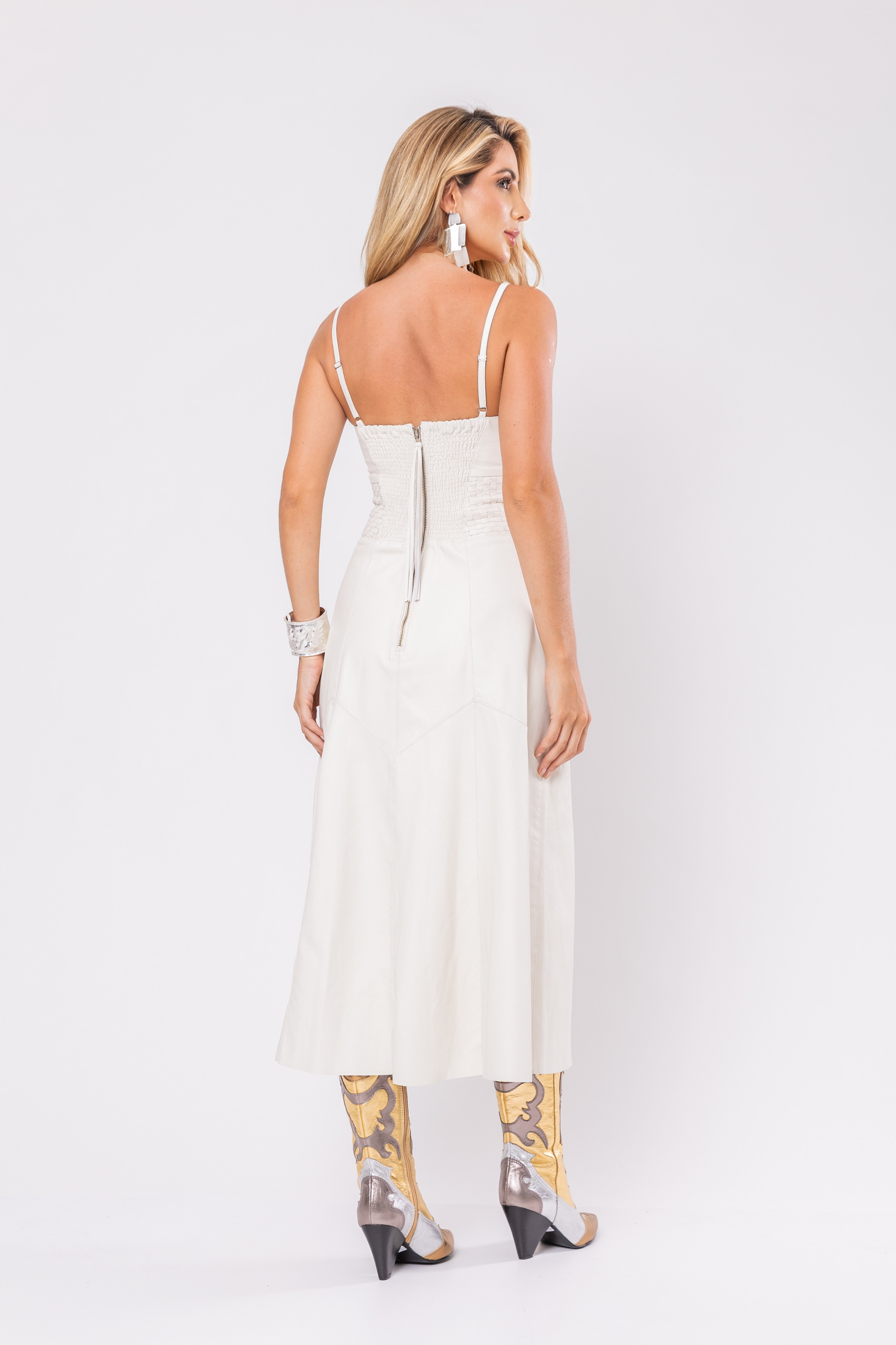 Vestido Midi de Couro Pelica com Tressê - Ticiane - Off White