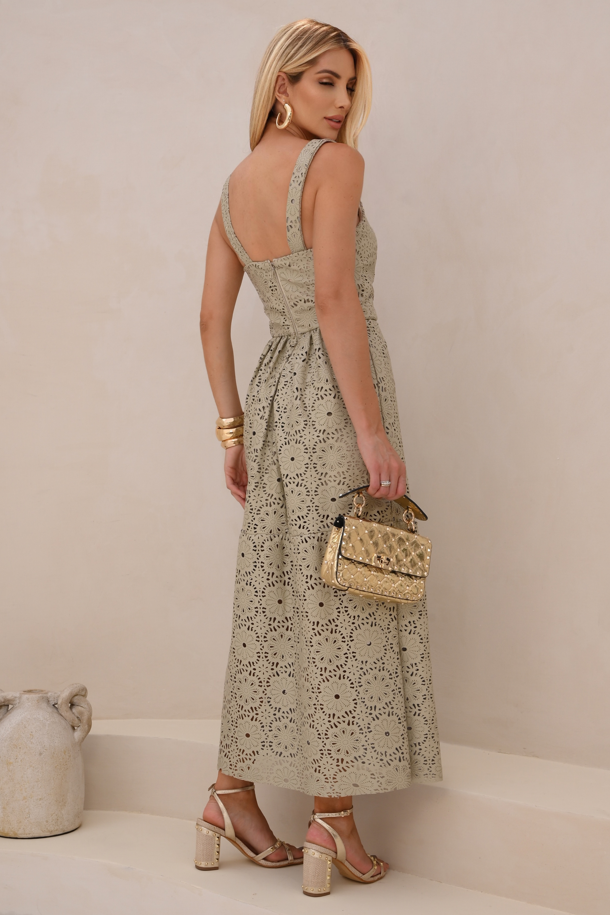 Vestido Midi de Couro Pelica - Thassia | Flor em Laser